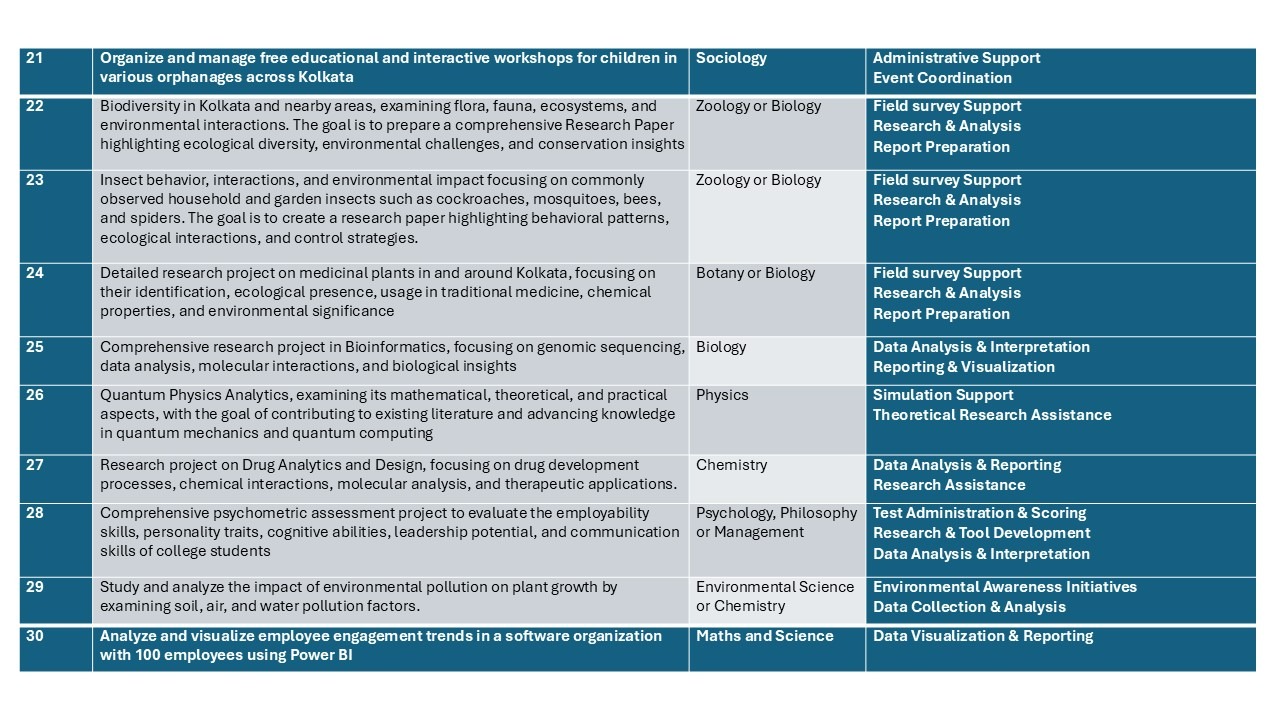2. Mentors would be experienced people like research scientists, academicians, industry professionals, entrepreneurs and other experts, etc