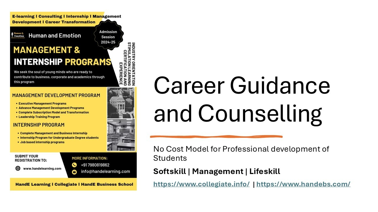 Collegiate Internship is the most Practical and Experiential Learning based programme includes complete subject learning, assignments and projects in different degree subjects, management and job function-based topics. This follows the complete guideline of UGC and NEP 2020 applicable to all the colleges and institutions across India.