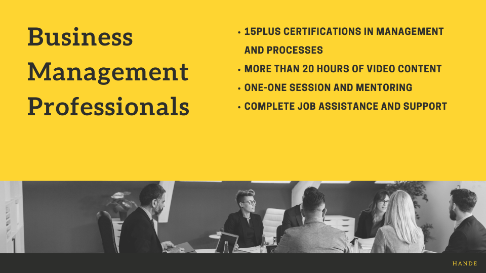 Disclaimer : HandE Learning provides Job Oriented Management Programs, HandE Programs are not degree programs & not affiliated with UGC / AICTE / DEC, these are industry recognised certification programs useful for the working professionals to enhance their knowledge & skill set.