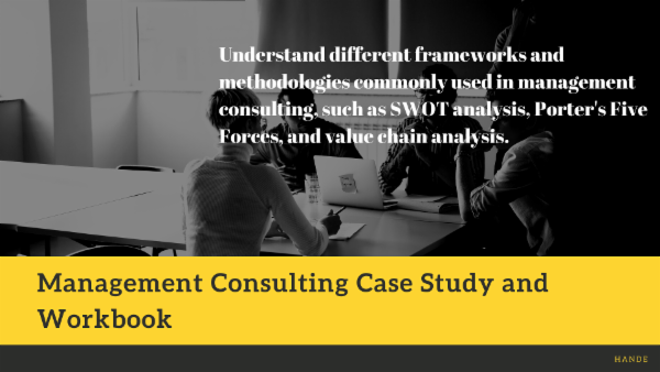 This course provides a comprehensive understanding of management consulting through the study of real-life case studies and interactive workbooks. You will gain in-depth knowledge of various consulting techniques, frameworks, and methodologies used in solving complex business problems.